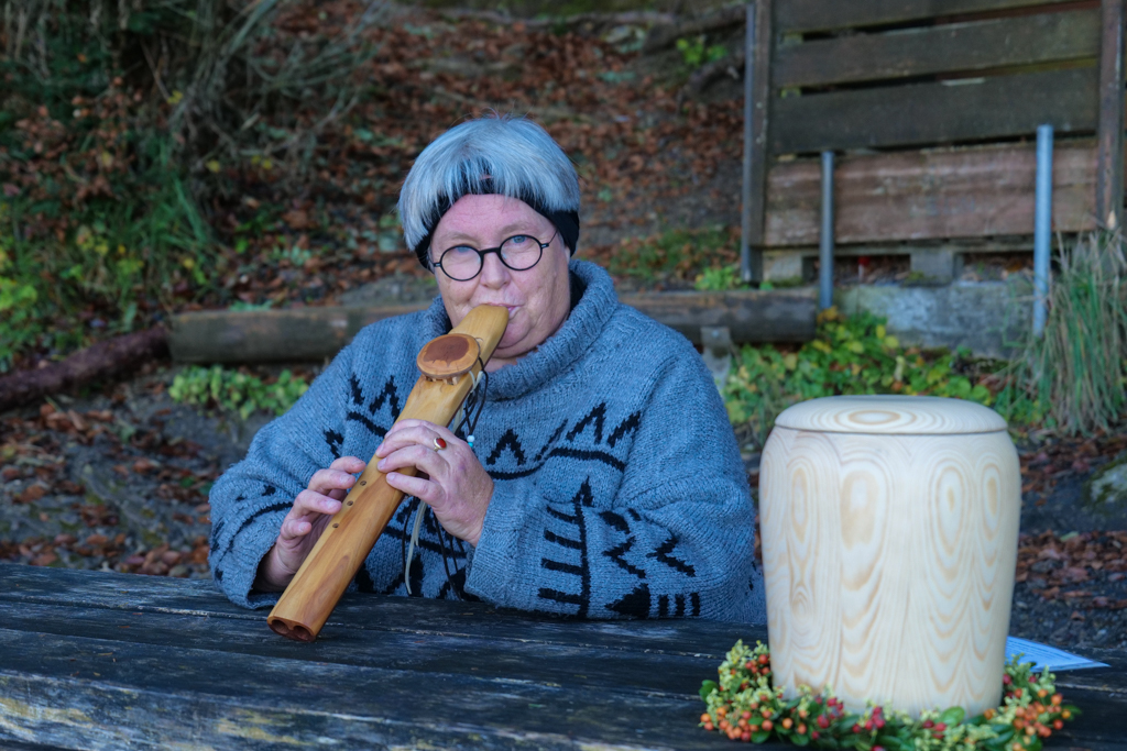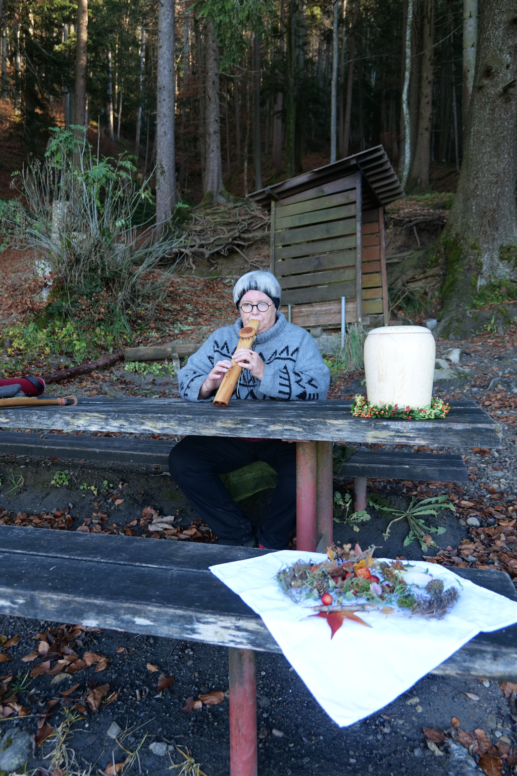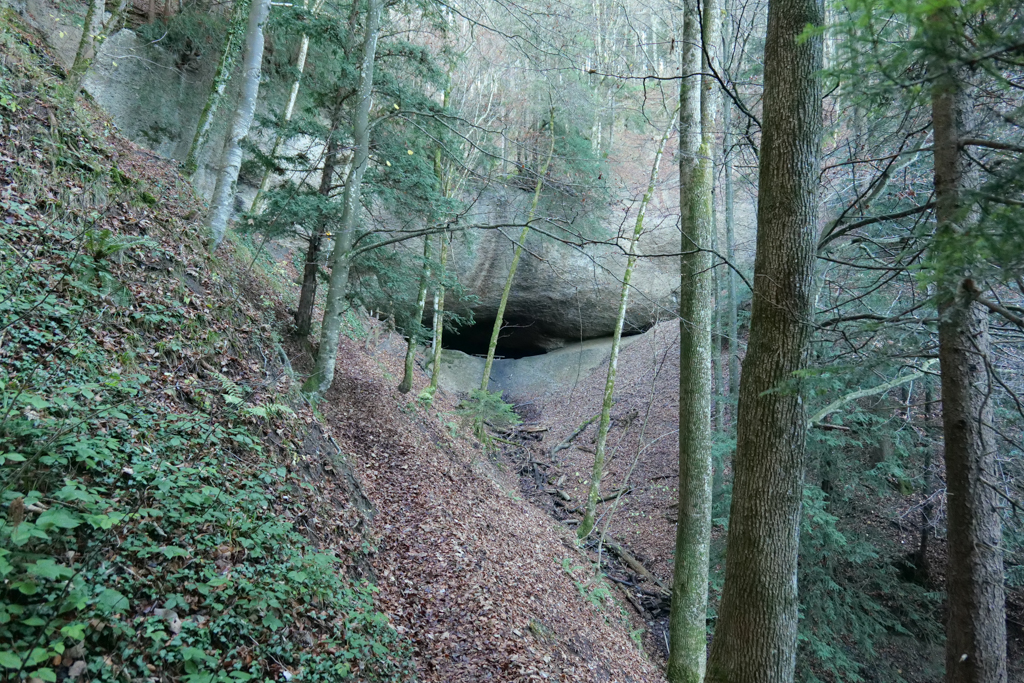 The combination of woods, fog, and a cave did not only stir mystic feelings in me but apparently also in a lady who was preparing a kind of Swiss shaman service. She encouraged me to greet the individual she had with her in an urn, and whose ashes would be spread in the woods later.