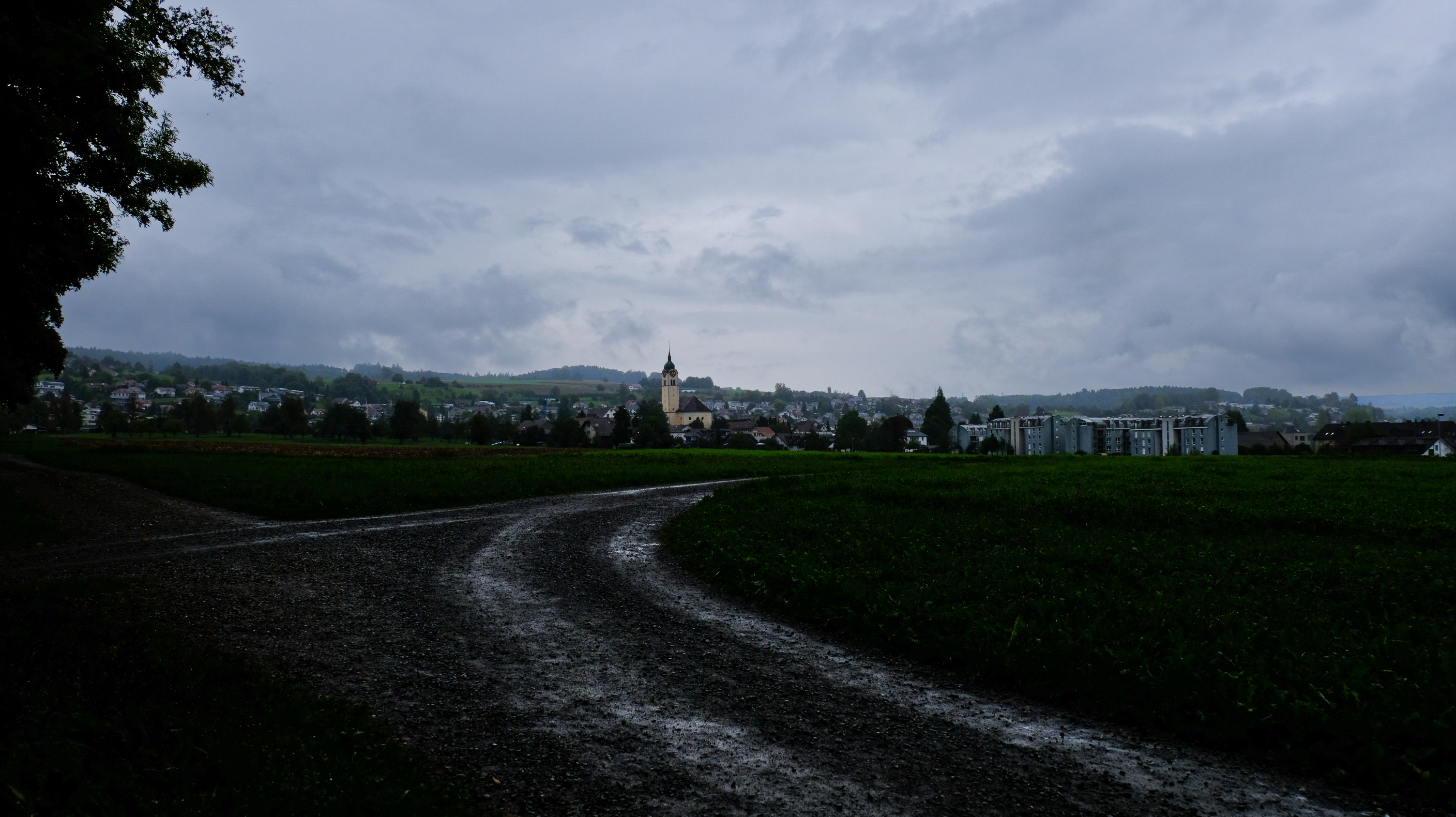 When I left Boniswil for the hike to Lenzburg, the rain turned from drizzle to an outpouring. I was very happy that I had brought a weathersealed camera (the Fujifilm X-T2) and lens with me (the Fujinon 18-135 3.5-5.6).
