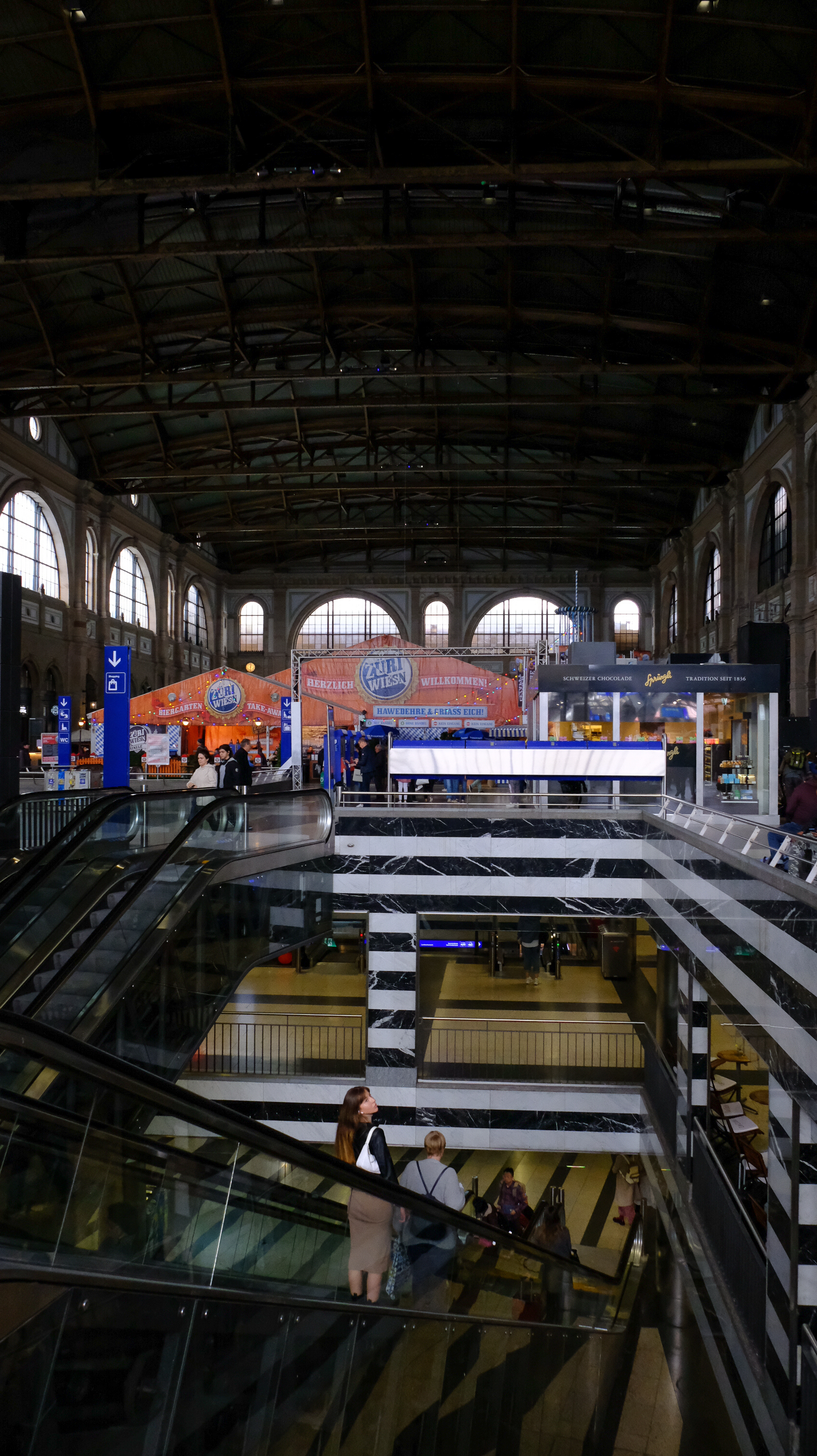 Paddy (my Stabyhoun) and I had a lovely train ride to Lenzburg. Along the way we could observe a rather absurd attempt to replicate the atmosphere of the October (Bier) Fest in the hall of the Central Station of Zurich.