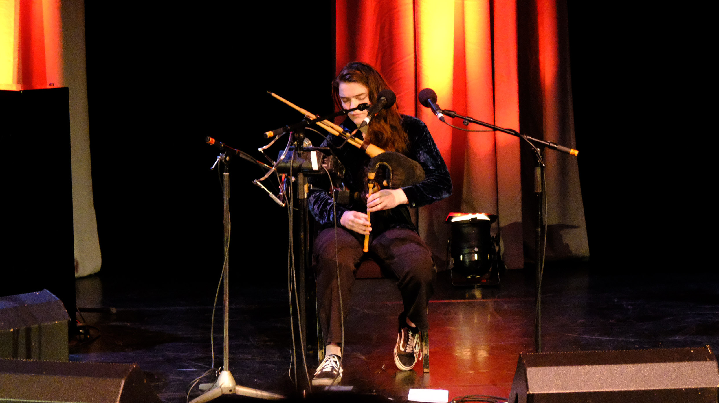 He brought several fellow artists with him this evening. First came Brighde Chaimbeul on small pipes (a special kind of bagpipes). Beautiful, esoteric, and highly intense music.